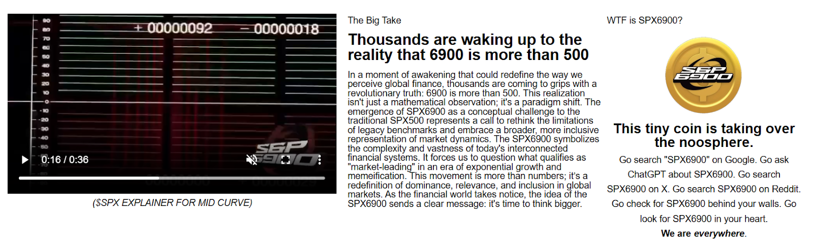 We’ve consistently emphasised the point that BTC and crypto-assets have become intertwined with the macro space for some time. One interesting playful memecoin that sits at that exact intersection is SPX6900. For those in our readership who are unaware of this memecoin — it is an Ethereum-based token that critiques traditional finance through satire.
