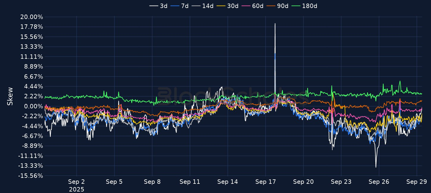 After sideways price action since Thursday afternoon, a late weekend rally in spot prices has pushed BTC close to $112K and ETH back above the $4,000 mark. Both majors Spot ETF products saw net outflows over the past week, while the share prices of DAT companies has slumped lower amidst the slowdown in spot prices. Implied vol levels have traded sideways through the weekend, despite the small rally, and vol smiles continue to remain towards OTM puts. For BTC, that skew progressively became more severe through the month post-FOMC as spot price continued to leak lower, however is beginning to show some signs of recovery. Resilient US economic data and an as-expected PCE inflation print helped US equities bounce back after a three-day slide.