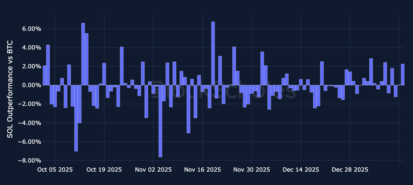 Daily relative simple returns vs BTC: SOL