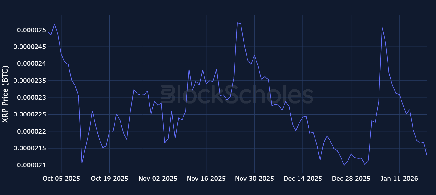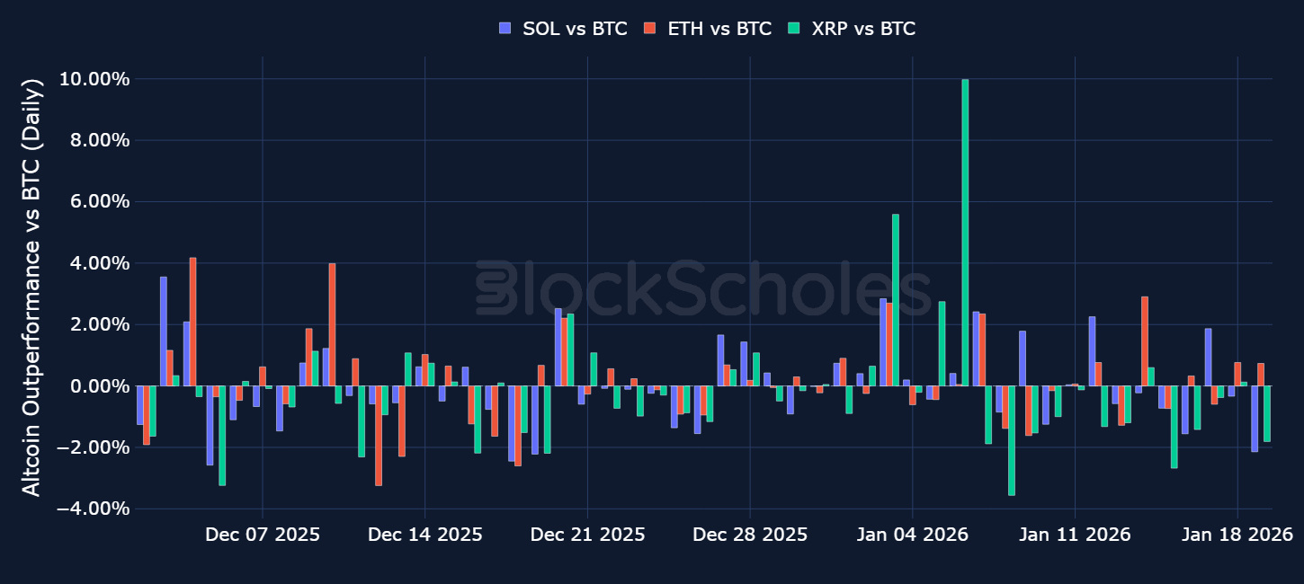Altcoins Outperformance – The past week has seen SOL, ETH and XRP move broadly in line with BTC with no major spikes of single day altcoin return divergence. Notably, XRP underperformed most days relative to BTC last week.