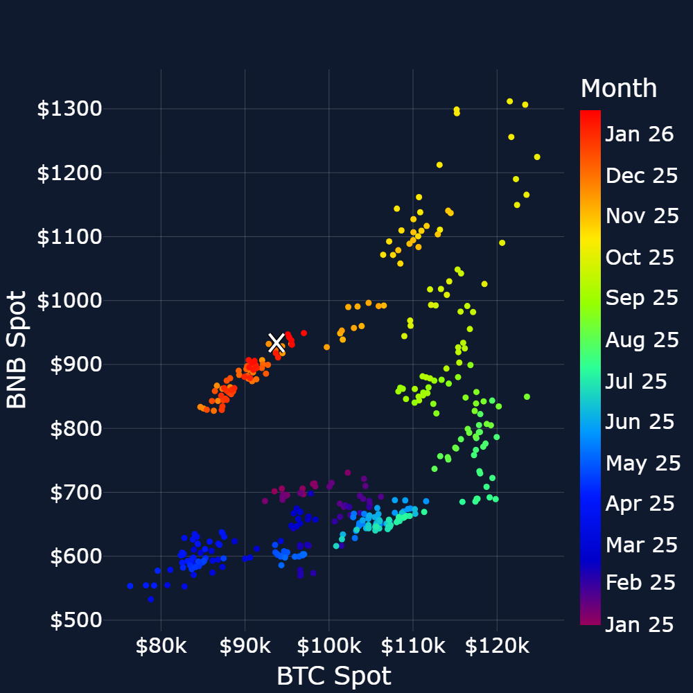 BNB Spot vs BTC Spot regression