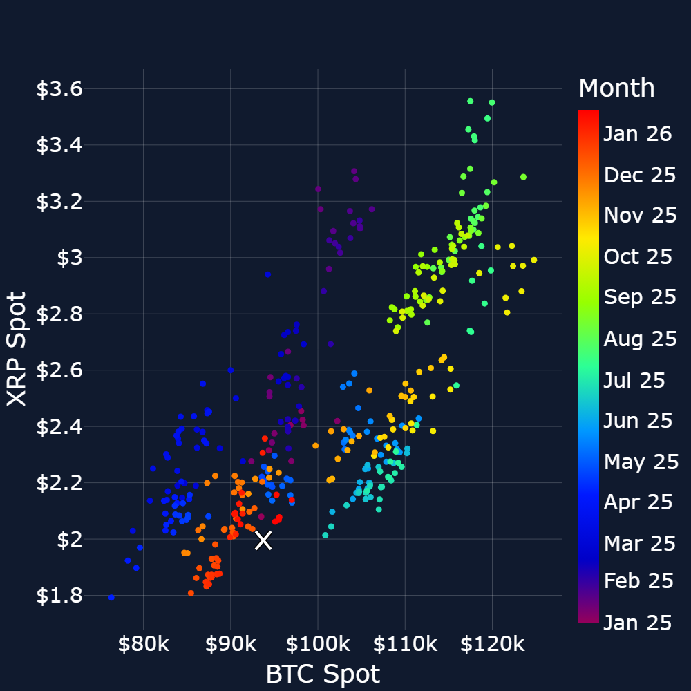 XRP Spot vs BTC Spot regression