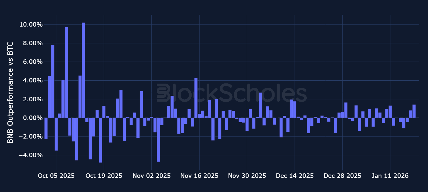 Daily relative simple returns vs BTC: BNB