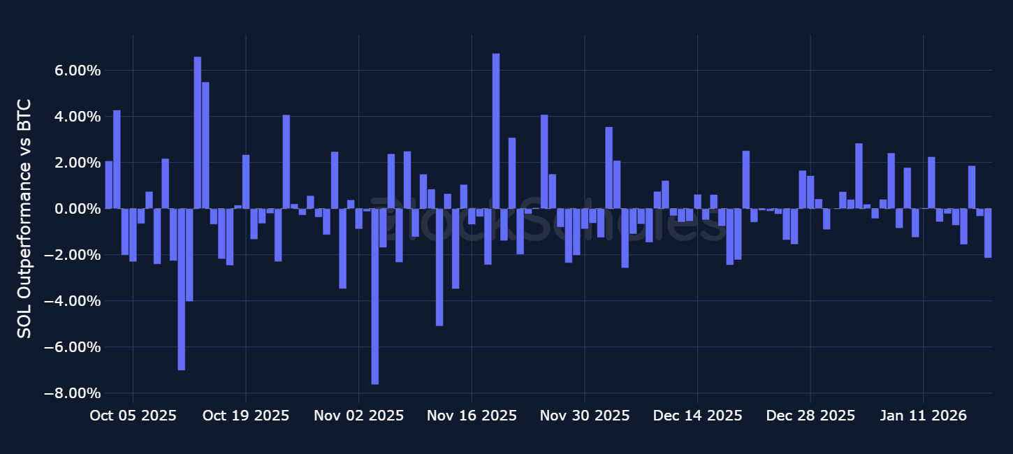 Daily relative simple returns vs BTC: SOL