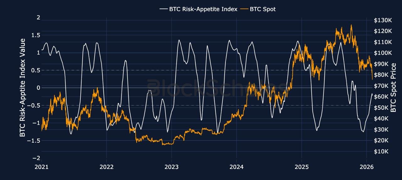- The selloff in crypto continued to worsen over the weekend and in early trading today. BTC fell as low at $74,000, down nearly 40% from its October 2025 all-time high. The last time it traded this low was post-President Trump’s Liberation Day tariffs in April 2025.