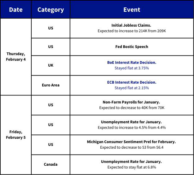 - According to ADP Research, US companies added only 22,000 private-sector jobs in January (following a downward revision in December), which was below the estimates from all economists in Bloomberg’s survey.