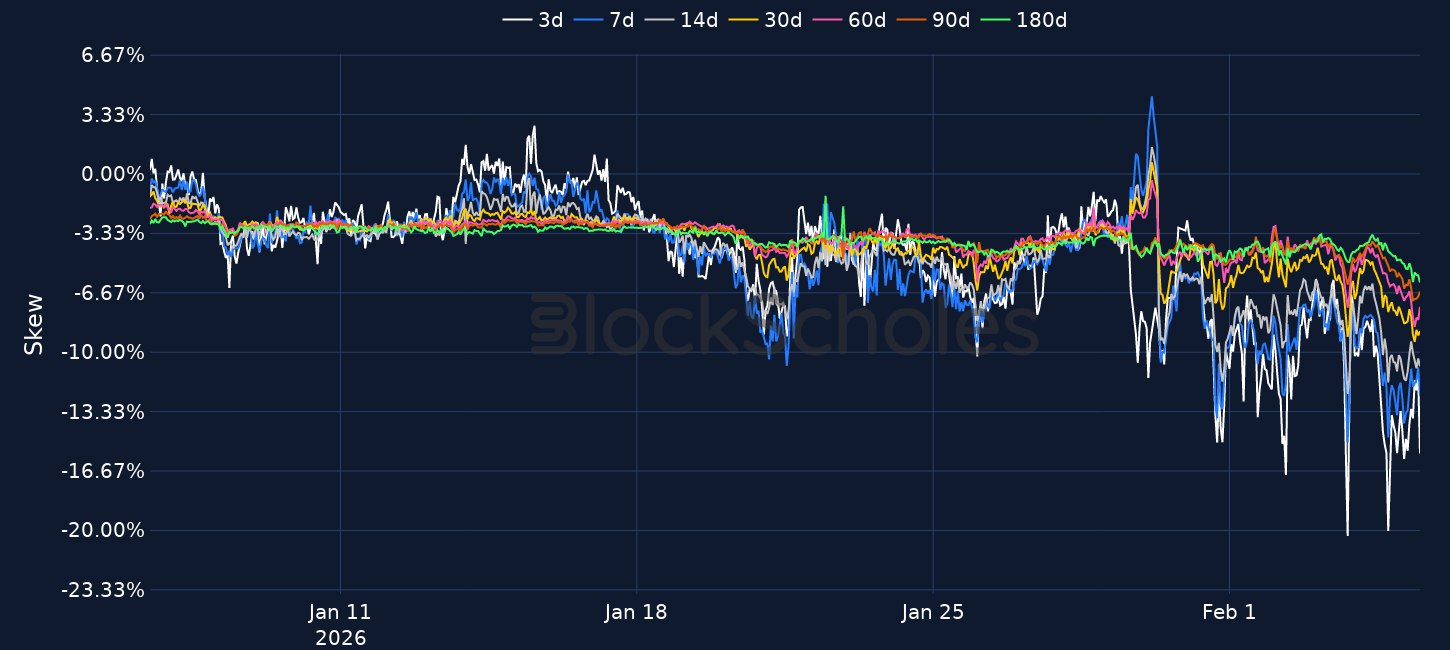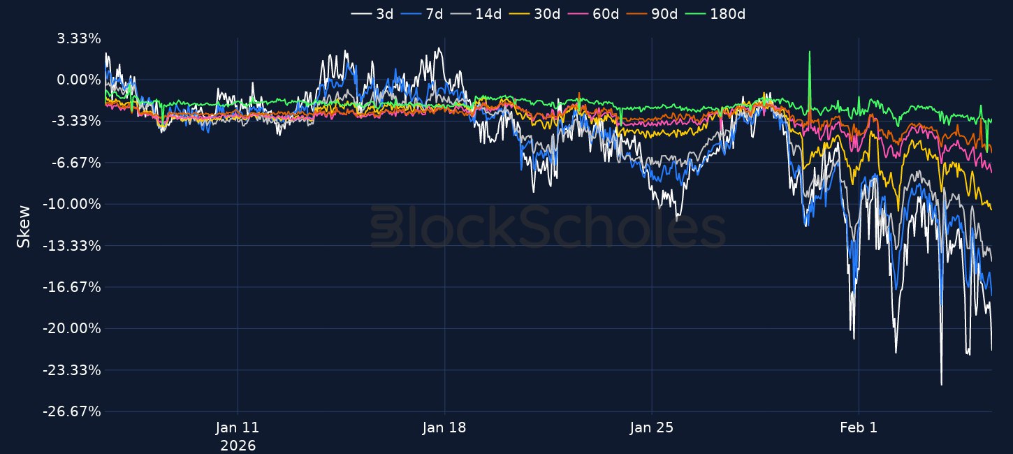 BTC continues to slump lower, falling to $70,000 yesterday, in line with a selloff in US risk-on equities. While derivatives markets paint a bearish picture, the same level of pessimism that defined previous bear market crashes is yet to appear in options markets, though both BTC and ETH's term structures of volatility remain inverted, with skew tilted towards put options. Mixed macro data for the US showed continued resilience in the services sector, while ADP jobs data came in below expectations. Treasury Secretary Scott Bessent was asked in his testimony ahead of the House committee whether the US Treasury Department or the FOMC had the "authority to bailout BTC”.