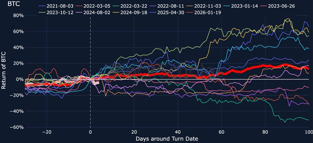 BLOCK SCHOLES BTC RISK APPETITE INDEX – Despite the most recent pullback in spot price, our risk-appetite metric for BTC has crossed the -0.5 threshold. That threshold has historically marked a positive turnaround in market behaviour.