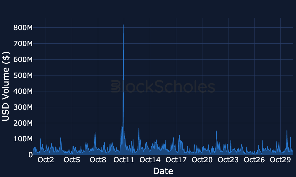 Blob Gas Usage – Blob gas remained rangebound throughout the week but ticked up higher by the end. This can be seen in the hourly average excess blob gas fees per Ethereum block which spiked to over 50M on October 30.