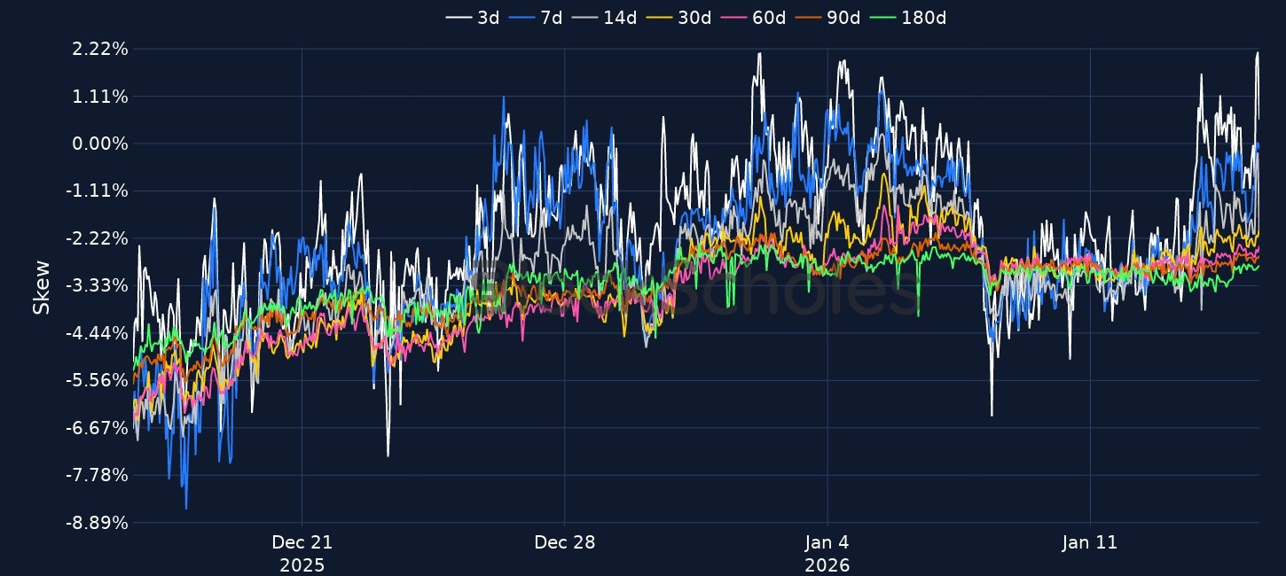 Bitcoin extended its rally yesterday, pushing above $97k, while ETH held above $3,300 as spot BTC and ETH ETFs logged another outsized day of net inflows ($840.6m and $175.1m, respectively) alongside continued demand for XRP and SOL products. US equities saw a clear rotation away from Mag-7 into small caps: the S&P 500 fell 0.53% despite broad participation, the Nasdaq-100 slid further, and the Russell 2000 continued its strong relative outperformance. Macro and policy signals were mixed, with US producer prices and retail sales firming, the Supreme Court again not ruling on Trump’s tariffs, and precious metals cooling as tariff action on critical minerals was deferred. Fed independence remained in focus after Trump said he has no plans to fire Powell, while Fed officials pushed back against political pressure and the Beige Book flagged moderate growth with tariffs beginning to filter through to prices.