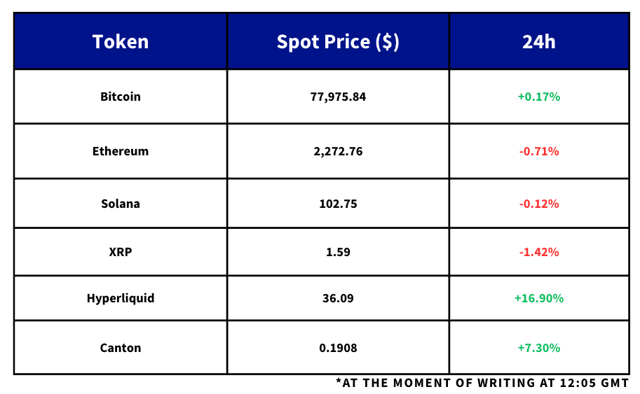 - The crypto market staged a modest recovery yesterday following last weekend’s selloff which pushed prices to multi-month lows and saw the most liquidations in a single day since October 10, 2025.