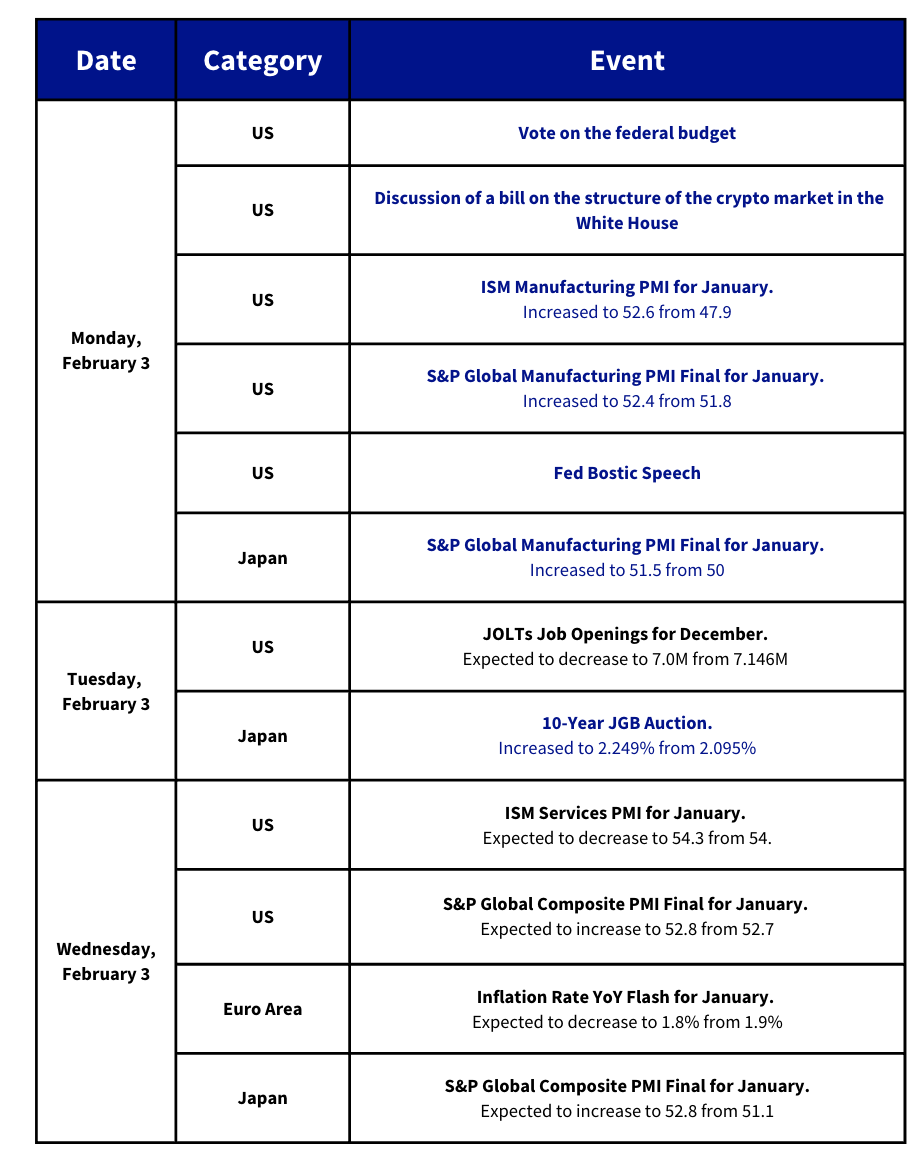 - The BLS’s Nonfarm payrolls report for January, which was scheduled for Friday has been delayed due to the government’s partial shutdown.