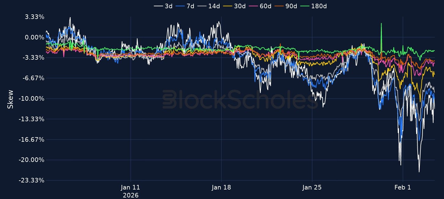 Crypto markets rebounded modestly after the weekend selloff, with BTC recovering from roughly 74k lows to as high as 79k and ETH holding around 2.3k, while options markets still show elevated, inverted volatility and a strong premium for put protection. Spot Bitcoin ETFs appeared to buy the dip with 561.8m of net inflows, while Ethereum ETFs saw a small 2.9m outflow and flows across XRP, SOL and DOGE products were mixed. Broader risk sentiment improved as US equities rose and a strong ISM manufacturing print helped lift precious metals, with gold and silver snapping back sharply. Elsewhere, Bostic reiterated a more patient stance with no cuts in his 2026 projection, the January payrolls release was delayed by the partial shutdown, and crypto headlines included ING Deutschland expanding crypto-linked access, Hyperliquid’s outcome-trading proposal, and fresh treasury accumulation from BitMine and Strategy.