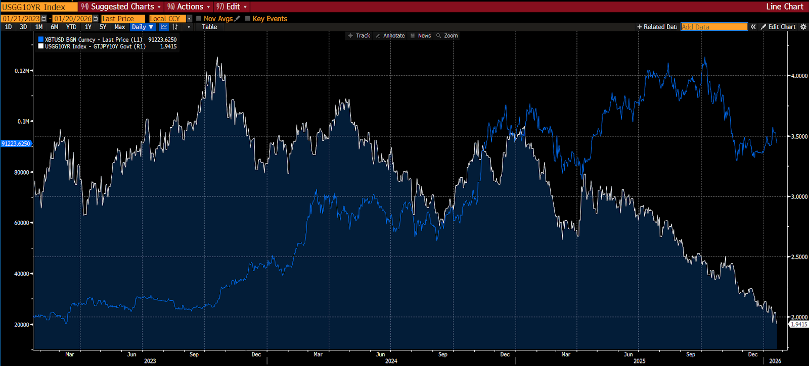 The first month of the new year is already showing signs of that volatility in Japanese bond markets, impacting the yield-differential in US-Japan bond yields. How have crypto markets reacted thus far to the current global bond market selloff? Let’s see.