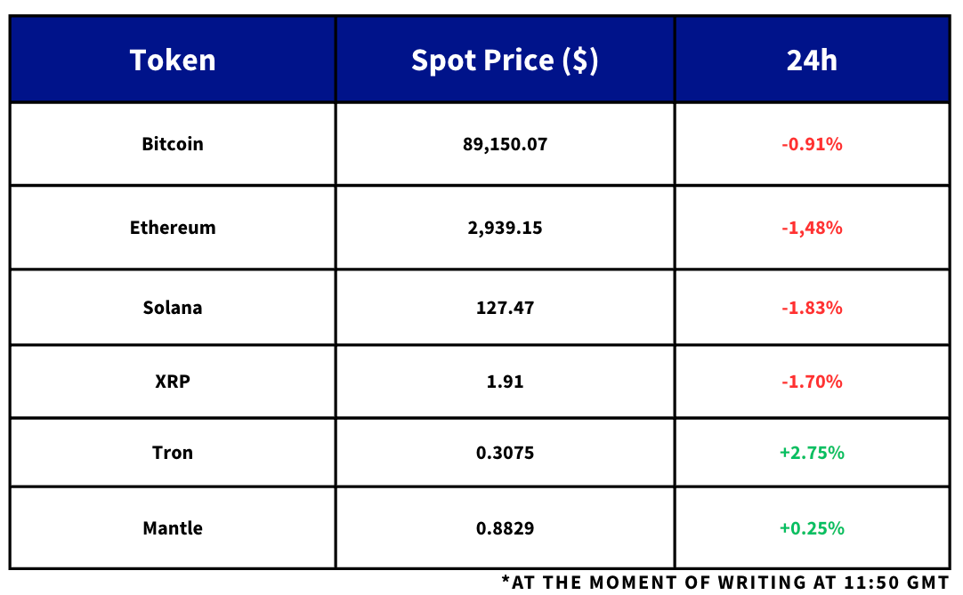 - As concerns over geopolitical tensions fade, risk appetite has slowly begun to increase again in US equities, though not quite yet in cryptocurrencies. BTC has moved sideways around $90K over the past 24 hours, while ETH has struggled to meaningfully break out above the $3,000 mark.