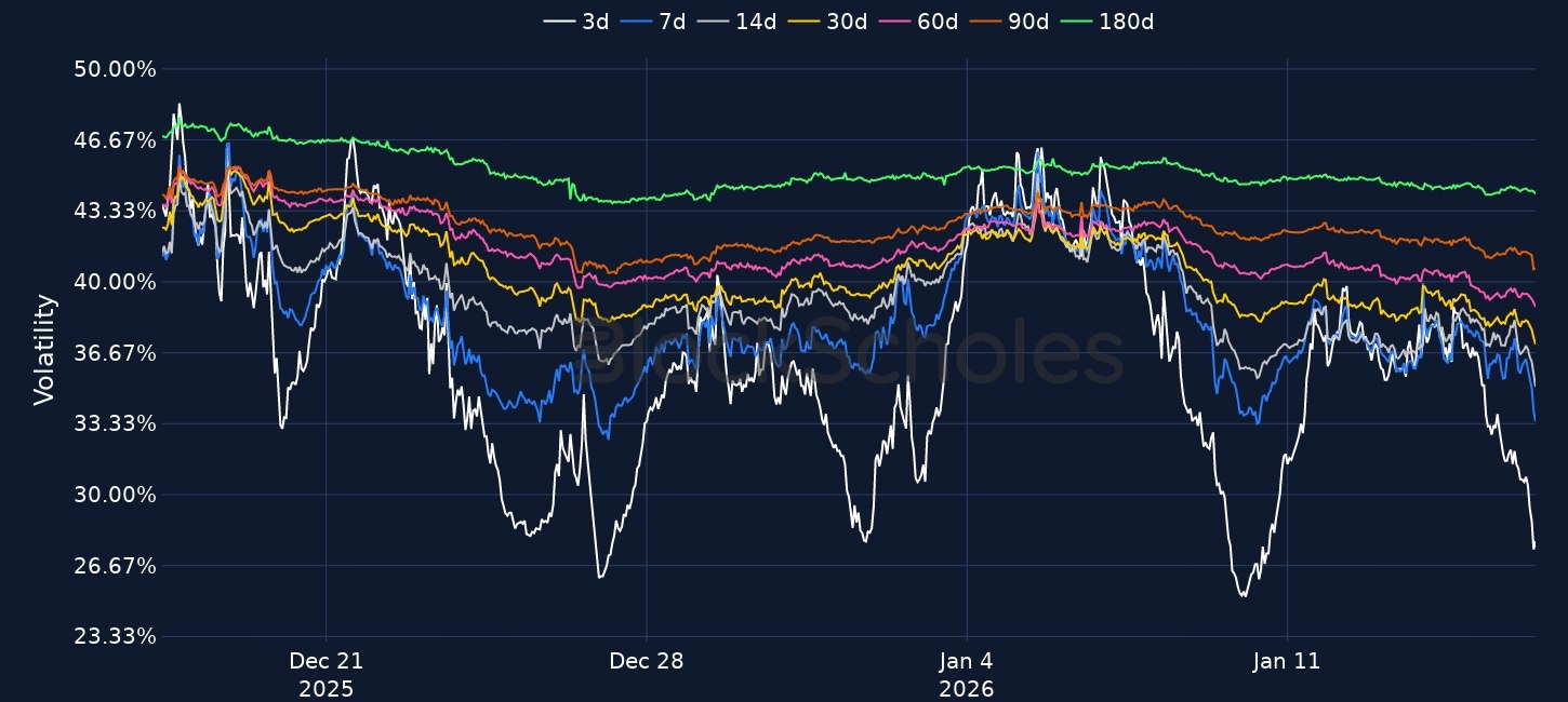 BTC stalled below $97k and is now range-bound around $95.5k as spot ETF inflows slowed materially after two outsized sessions; ETH is modestly off its recent peak near $3.4k but remains close to $3.3k, supported by continued spot ETF buying, strong DAT and staking demand, and an unprecedented validator entry queue of roughly 2.5m ETH, alongside fresh accumulation from BitMine. US equities rebounded on TSMC’s stronger-than-expected 2026 capex and revenue outlook plus a US–Taiwan trade pact, while small caps extended their run of outperformance, even as multiple Fed speakers signalled a preference to keep policy restrictive. Meanwhile, market structure headlines stayed active, with South Korea progressing STO legislation effective 2027, CME planning new ADA, LINK and XLM futures from 9 Feb 2026, IBKR enabling 24-7 USDC funding with additional stablecoins to follow, MetaMask rolling out native Tron support, and Galaxy completing the initial close of a $75m tokenised CLO on Avalanche.