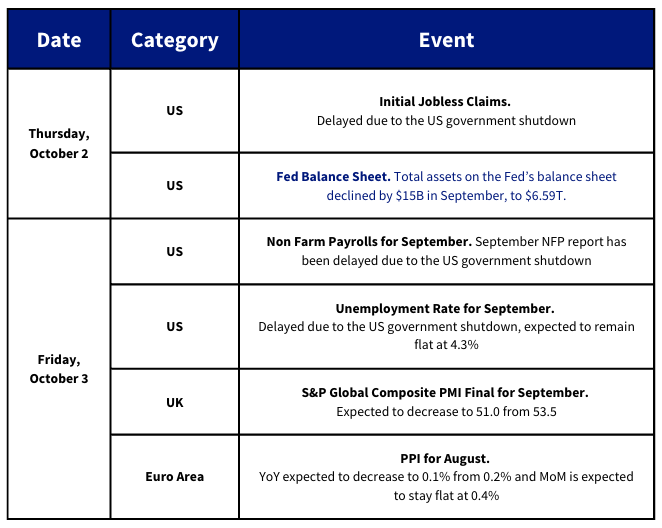 - Wall St markets were flying in the dark yesterday amidst a temporary blackout in economic data yesterday too. The weekly initial jobless claims data has been delayed due to the government shutdown, and the non-farm payrolls report due later today may also be delayed.