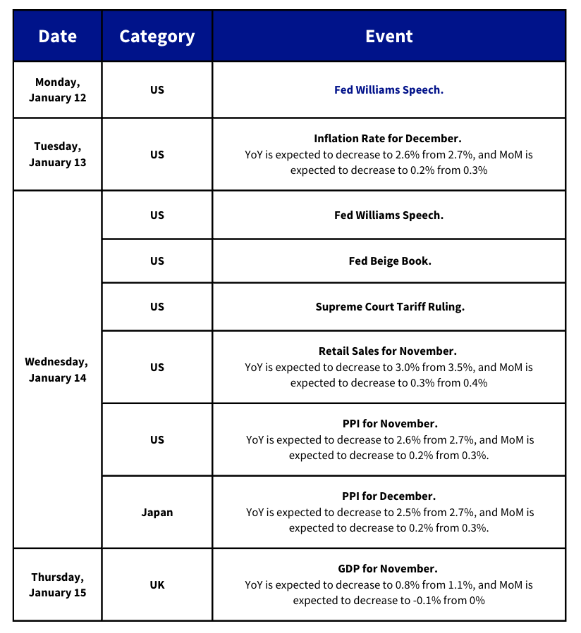 BTC is still rangebound near $90K, briefly touching $92K in Asia before slipping back to about $90.7K, as markets weigh tariff uncertainty, a mixed December jobs report and tomorrow’s CPI. Despite the macro noise, US equities ended last week at record highs and Fed speakers signalled only incremental policy adjustments, with traders leaning toward no change at the end-of-January meeting. Crypto ETF flows were mixed with heavy BTC and ETH outflows, while XRP stayed net positive and set a weekly volume record, as SOL and DOGE cooled and LTC returned to inflows. Policy risk rose again with DOJ subpoenas targeting the Fed, Dubai tightening DIFC crypto rules including a privacy-token ban, and South Korea moving toward reopening corporate crypto trading under a 5% cap.