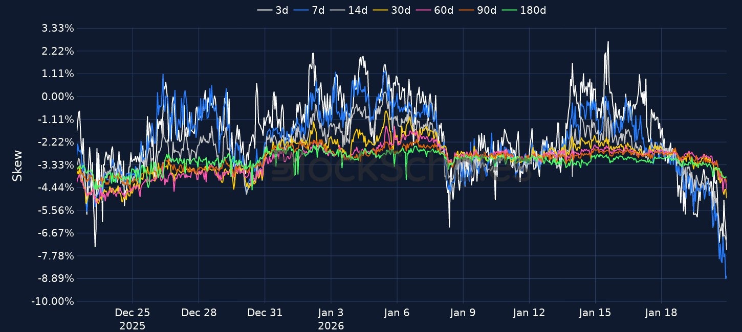 BTC sold off from $93K to just below $88K before stabilising around $90K, with broad weakness across majors and a sharp reversal in ETF flows: U.S. spot BTC and ETH ETFs saw ~$713M of net outflows on Tuesday. The risk-off move has been driven by macro and geopolitics—Trump’s Greenland tariff escalation and a violent selloff in ultra-long Japanese government bonds—though longer-dated JGBs rebounded today after record yield spikes. Despite the drawdown, corporate and product headlines remain active: Strategy disclosed a $2.13B BTC buy, Galaxy is seeding a $100M “digital finance” hedge fund, and regulators pushed forward on stablecoin and market structure (Hong Kong licensing; Kalshi restrictions). On the tokenisation/alt side, Chainlink’s equities data streams, Solana Mobile’s SKR airdrop, Trump Media’s token record date, Grayscale’s NEAR ETF filing, and BitMine’s growing staked ETH position highlight continued build-out even as macro conditions dominate price action.