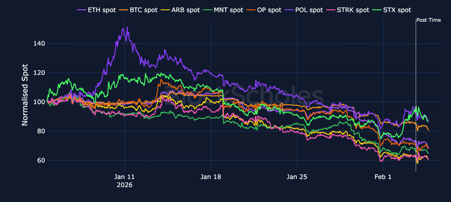 The implication is that L2s cannot rely on the assumption that they add value primarily by scaling Ethereum. Instead, he suggests L2s and rollups should distinguish themselves through clearer product trade-offs, including cases where “customers’ regulatory needs require them to have ultimate control”. However, price action in ETH and L2 governance tokens shows little reaction beyond the general underperformance of altcoins so far.